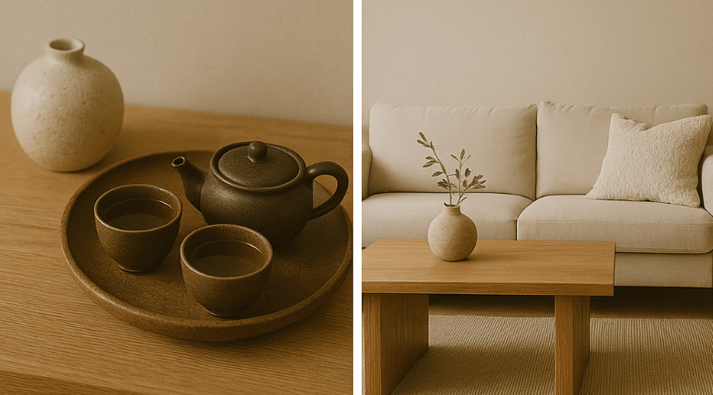 Rooted in Zen Buddhism, it teaches acceptance of life’s transience. In design, this translates to calm minimalism, earthy materials, and an appreciation of time’s gentle touch.